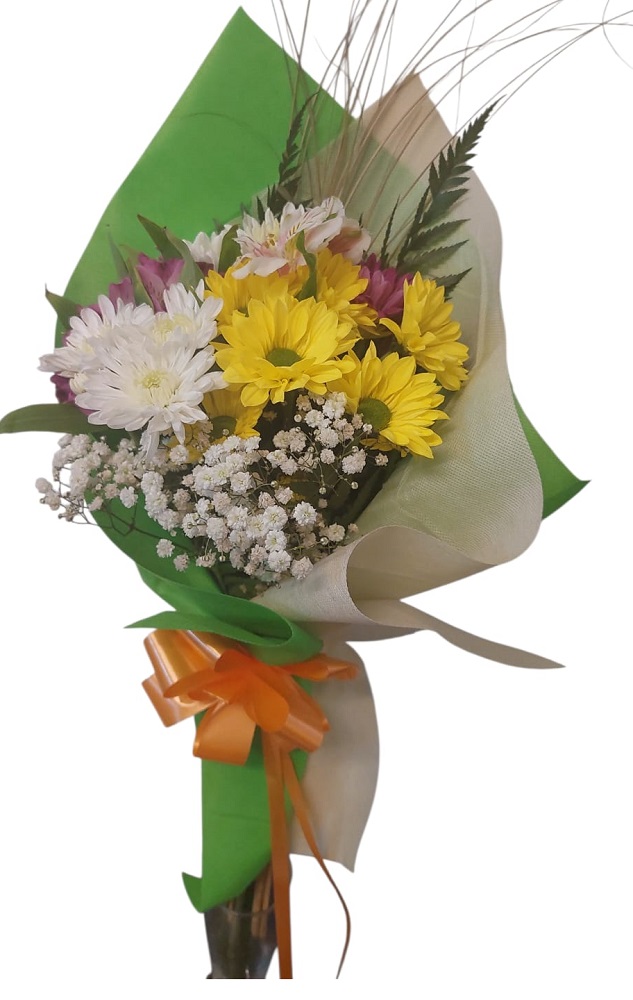Ramo colorido de felpilla y astromelias, perfecto para alegrar cualquier espacio. Incluye una variedad de flores frescas y vibrantes en tonos brillantes y suaves.