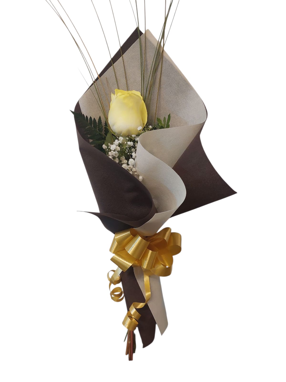 Ramo de 1 rosa pintada de amarillo, símbolo de alegría, amistad y energía. Perfecta para regalar en primavera, evocando sol, renovación y el comienzo de nuevas etapas.