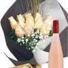 Ramo de 12 rosas amarillas con bombones Ferrero Rocher 8 uds y vino Stagnari chardonnay de virginia, Las rosas amarillas son símbolo de amistad, alegría y nuevos comienzos. Perfectas para compartir momentos felices.