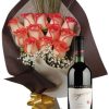 Ramo de 12 rosas blancas con vino Stagnari Chardonnay de virignia, La pureza y elegancia de las rosas blancas son ideales para momentos especiales y celebraciones.