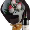 Ramo de 3 rosas blancas con vino Stagnari Chardonnay de virginia, La pureza y elegancia de las rosas blancas son ideales para momentos especiales y celebraciones.