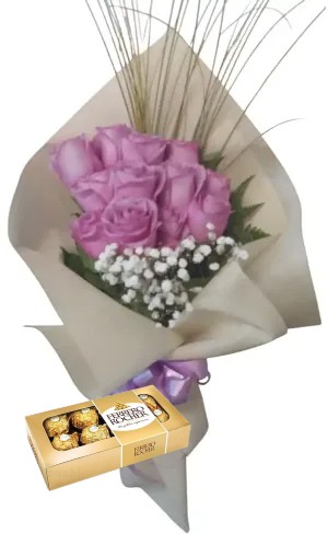 Ramo de 6 rosas matizadas con bombones Ferrero Rocher 8 uds