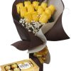 Ramo de 6 rosas beige con bombones Ferrero Rocher 8 uds