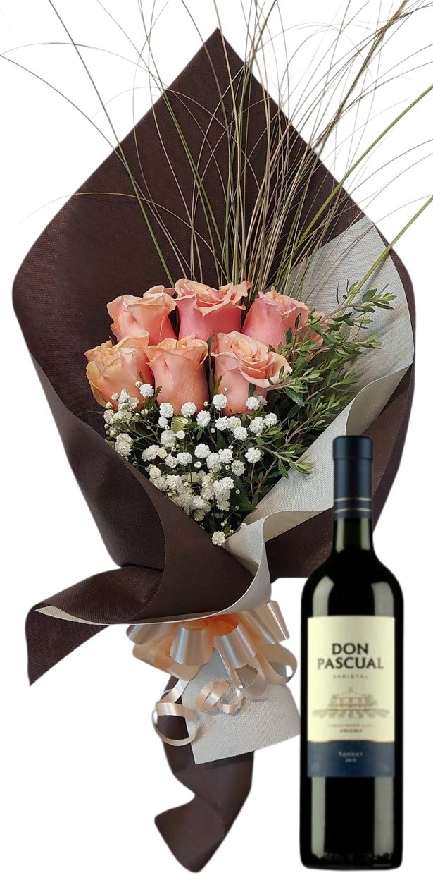 Ramo de 6 rosas beige con vino Don Pascual Tannat