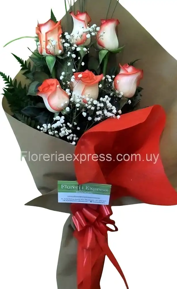 Ramo de 6 rosas matizadas, Las rosas matizadas, con sus pétalos fusionando tonos, simbolizan la unión de sentimientos y la belleza de lo impredecible.