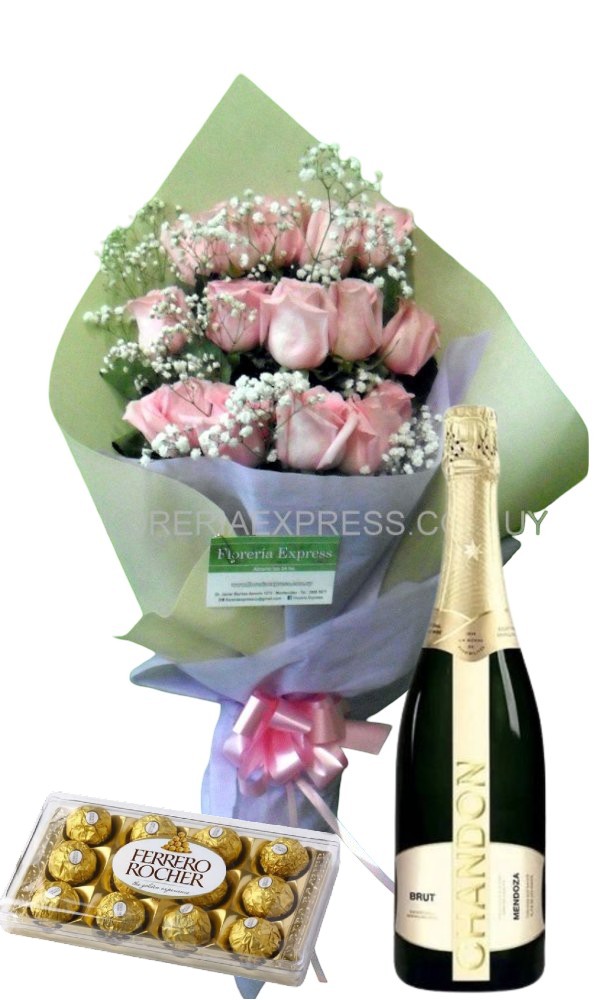 Inolvidable ramo para quinceañeras con 15 rosas ecuatorianas color rosa de tallo largo y medio acompañadas con follajes e ilusiones, envueltas en delicado tnt de dos tonos, rodeado con moño al tono.
